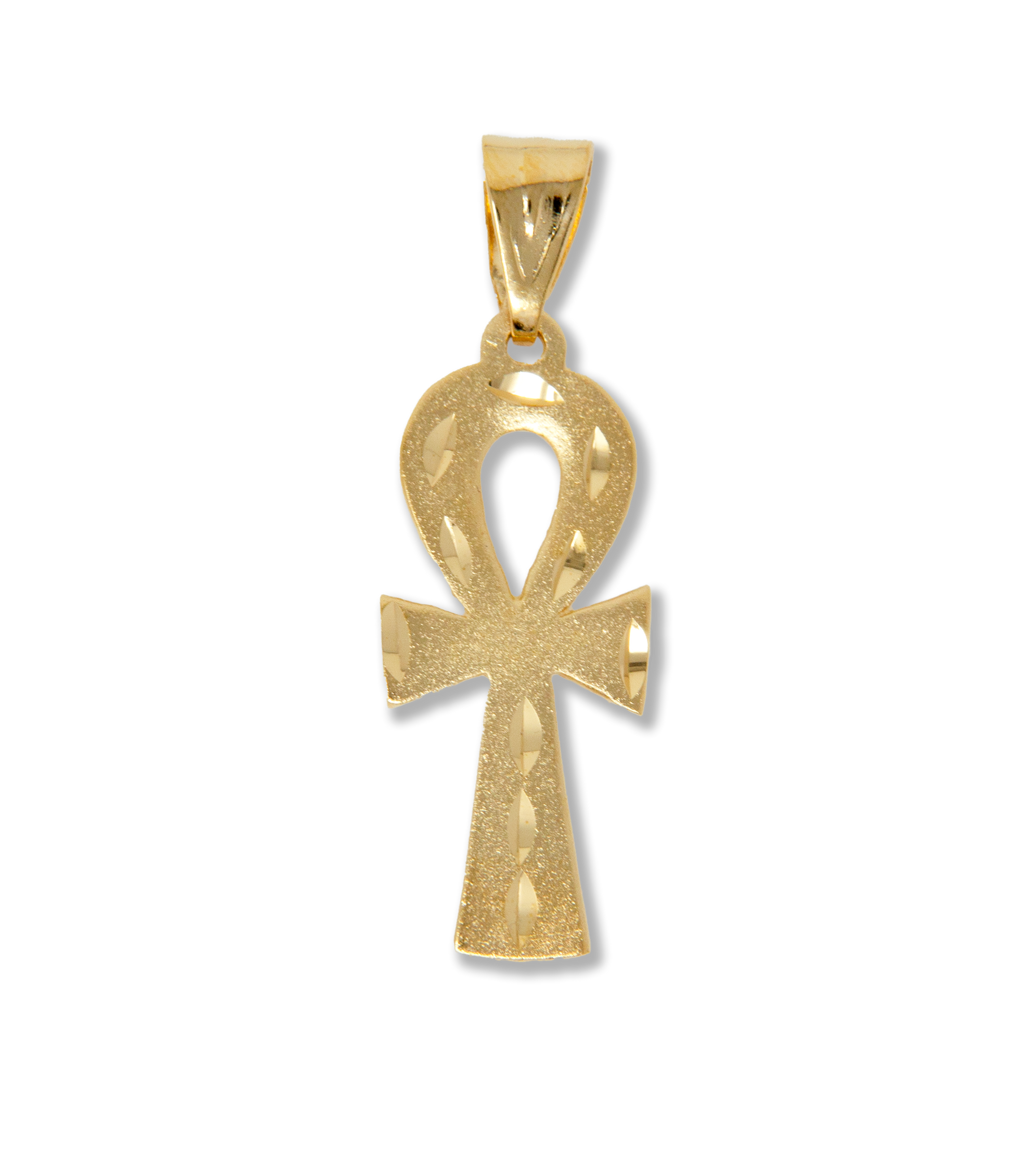 Ank cross, matte and diamond cut finish, 14kt gold-filled.