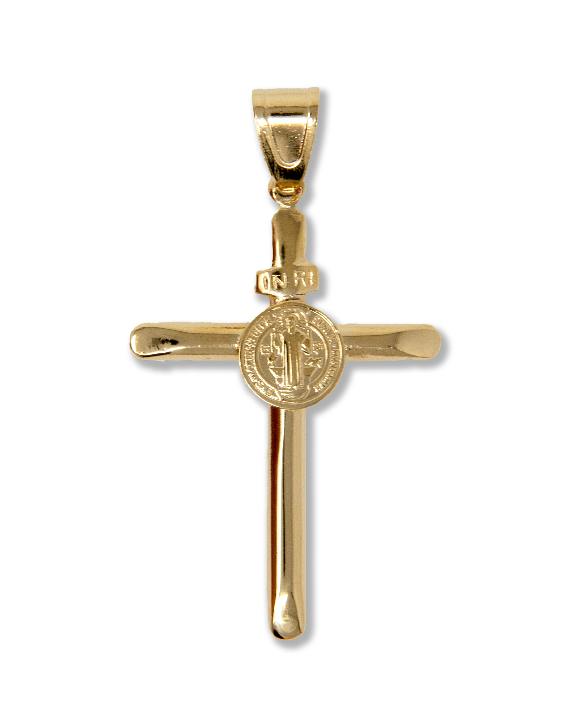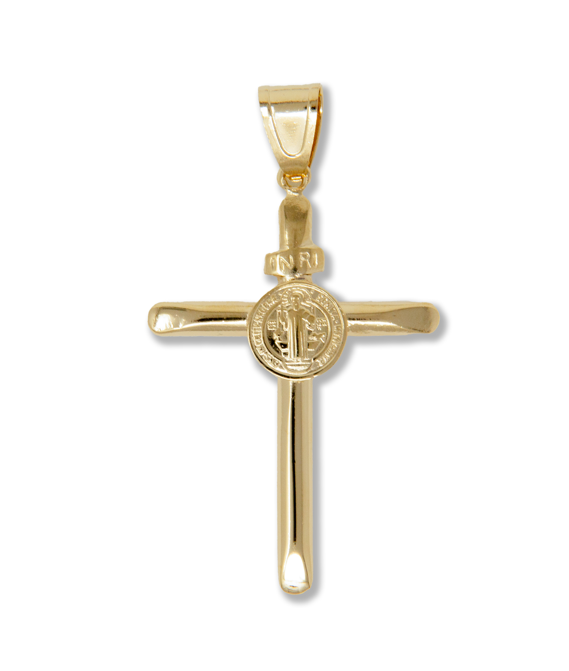 Plain cross with Saint Benedict in the center, 14kt gold-filled.