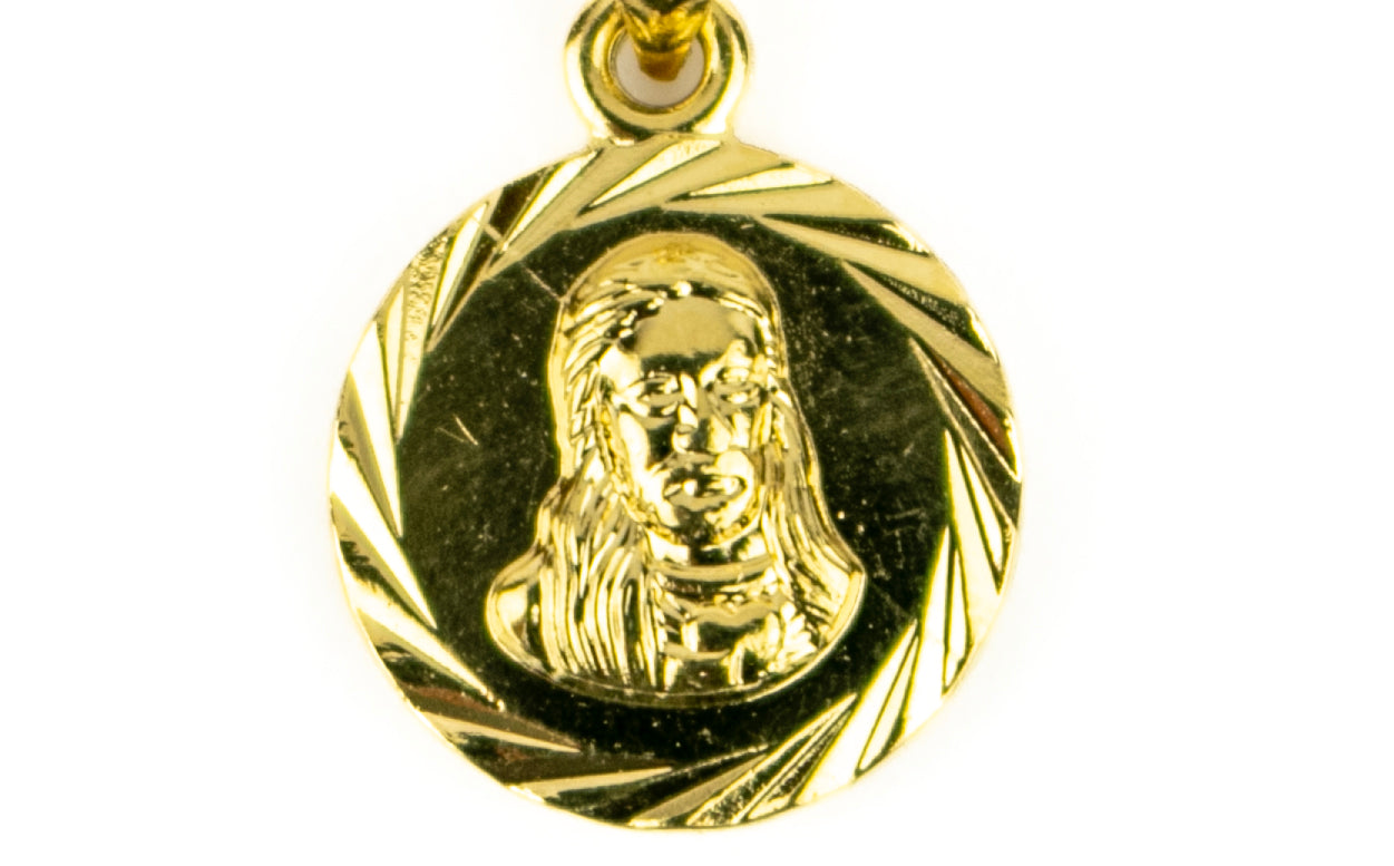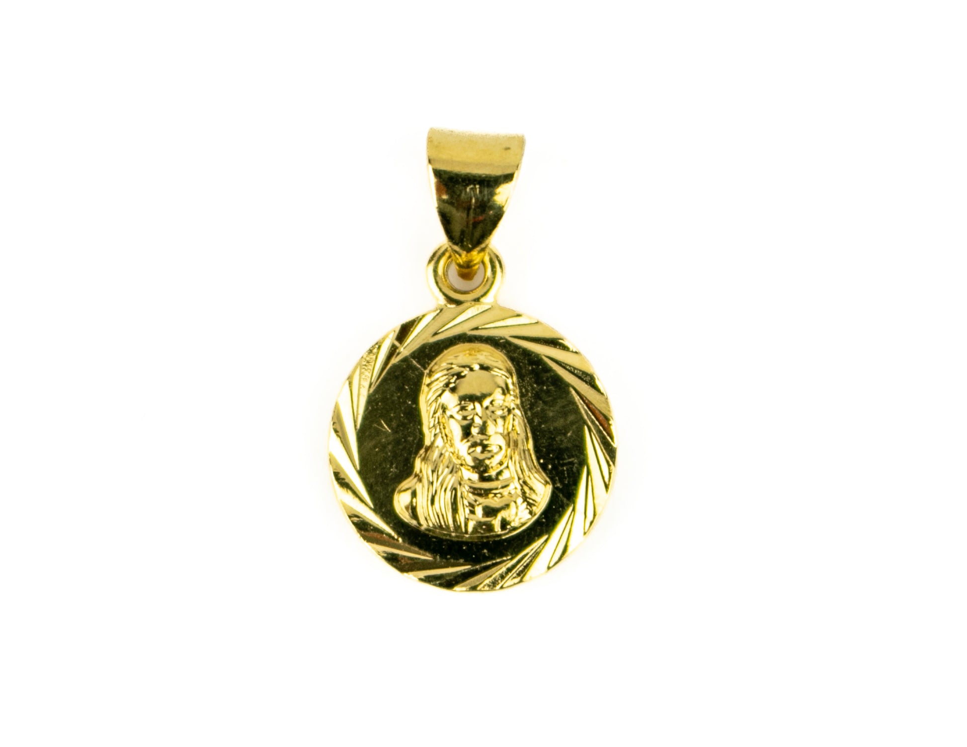 ROUND SHAPE CHARM, TWO-SIDED, VIRGIN OF GUADALUPE AND SACRED HEARTH OF JESUS, GOLD FILLED