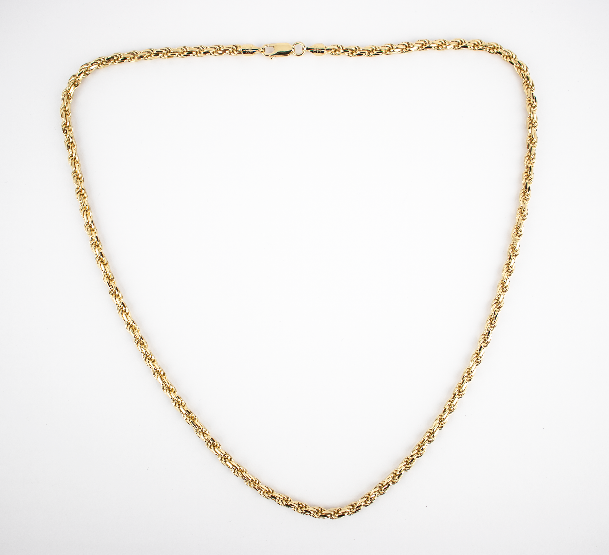 DIAMOND CUT-ROPE CHAIN 24" LARGE AND 2mm THICKNESS made of 14 & 22 Karat gold filled and bonded over a heart of semiprecious metals.