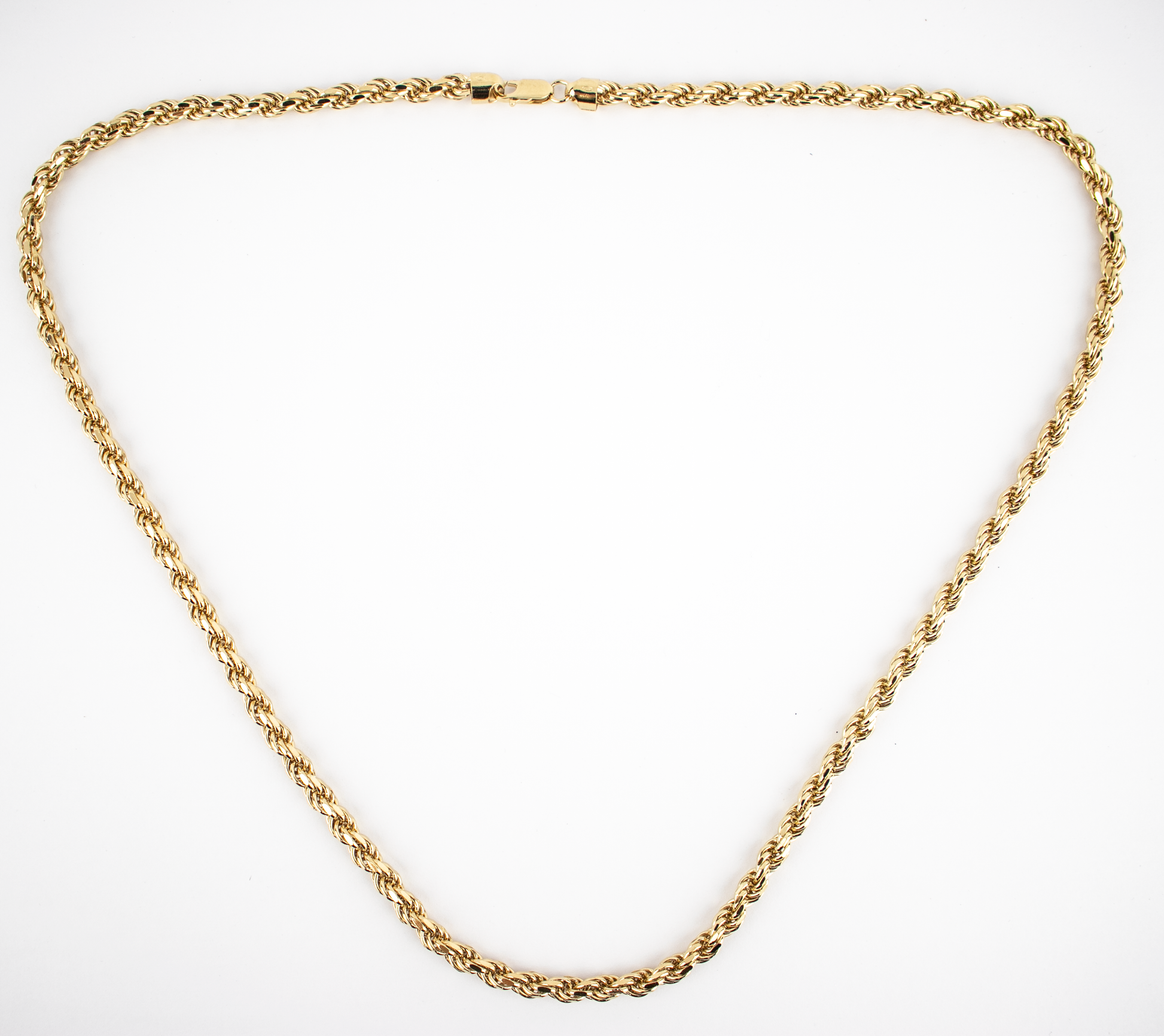 DIAMOND CUT-ROPE CHAIN 28" LARGE AND 3mm THICKNESS made of 14 & 22 Karat gold filled and bonded over a heart of semiprecious metals.