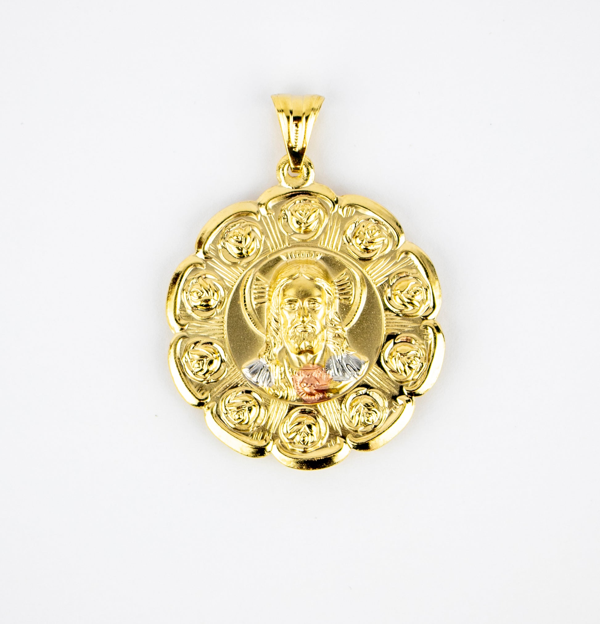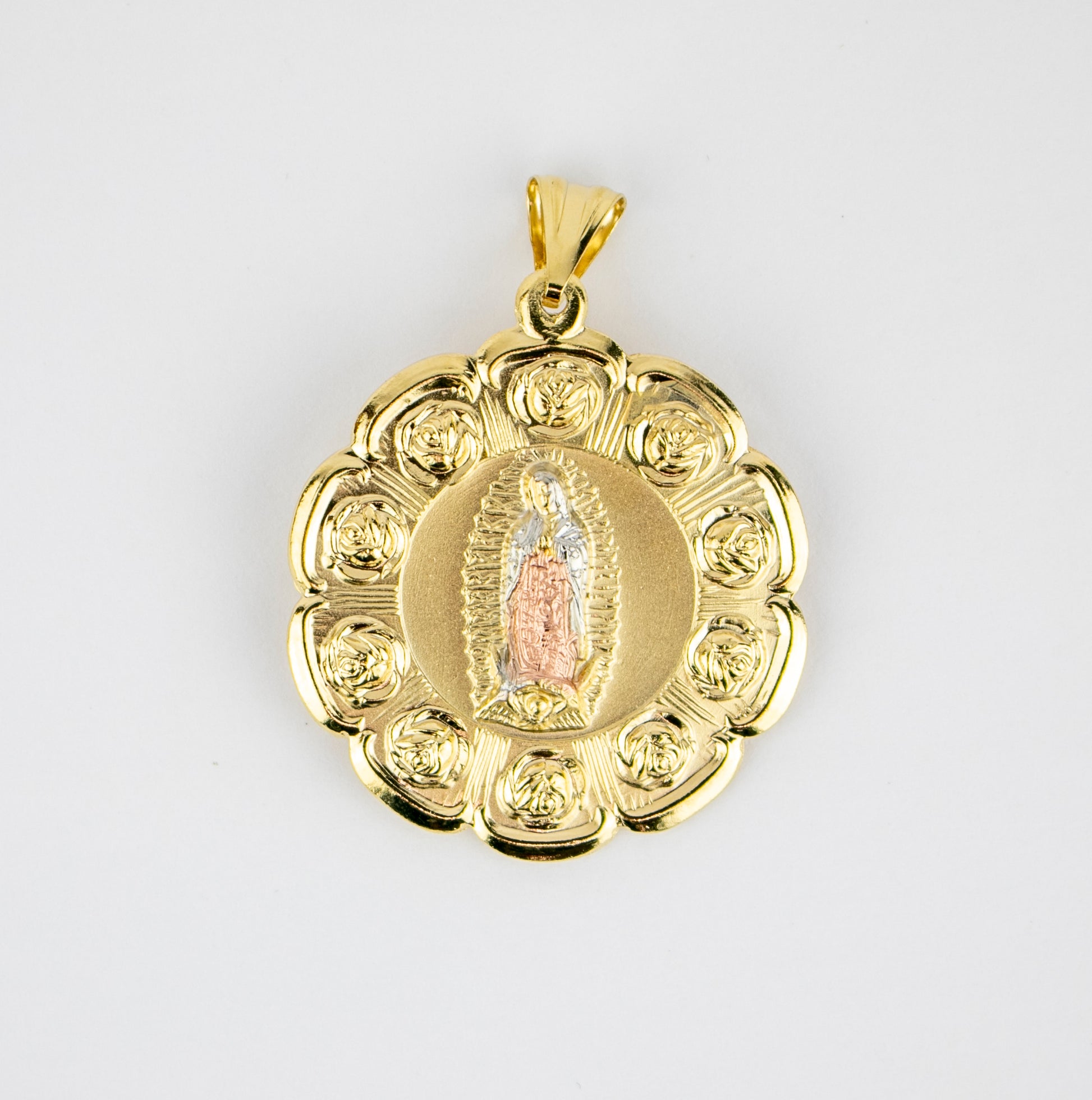 MEDALLA CON VIRGEN DE GUADALUPE Y SAGRADO CORAZON 3 TONES 1" (MED-ES89)