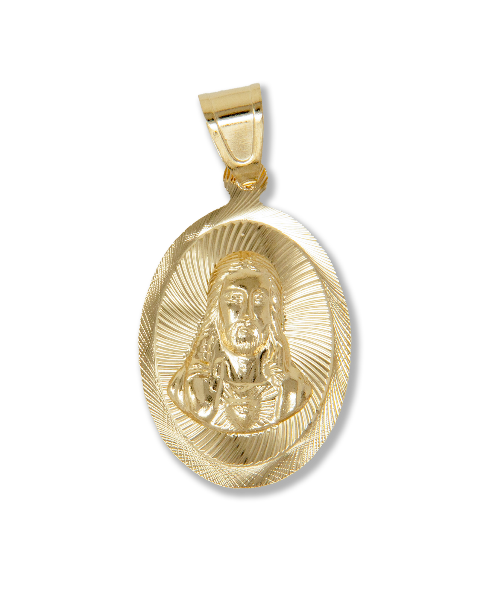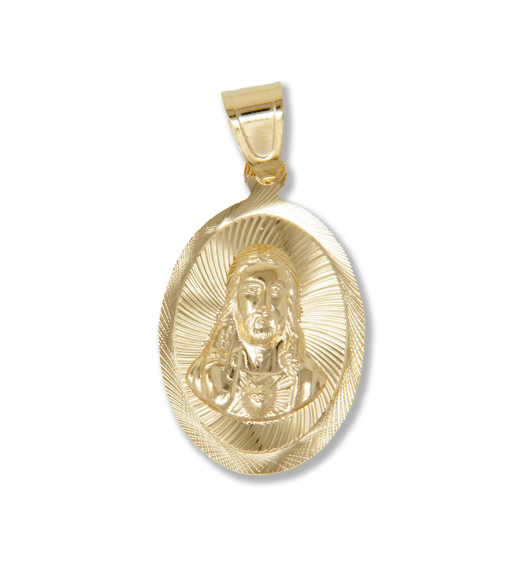 Oval Shape Sacred Hearth of Jesus diamond cut charm, 14kt gold-filled