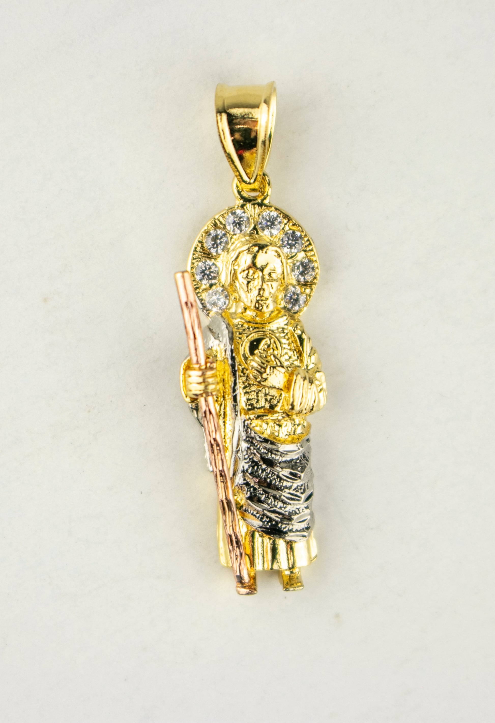 SAN JUDAS CHARM 1.5" GOLD FILLED & CUBIC ZIRCONIA (DP-65)