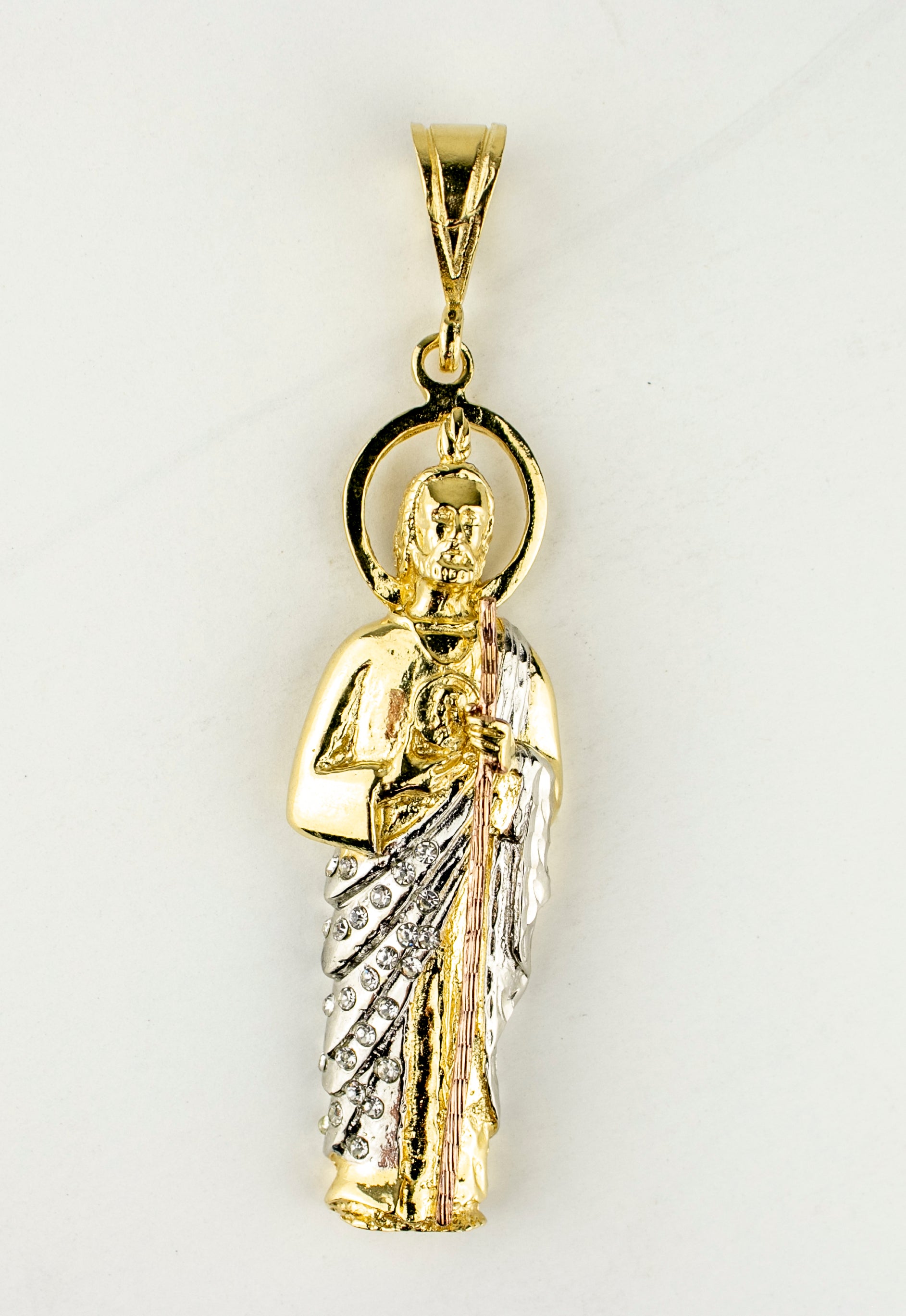 SAN JUDAS CHARM 4" THREE TONES OF GOLD FILLED & CUBIC ZIRCONIA.(DEX-01)