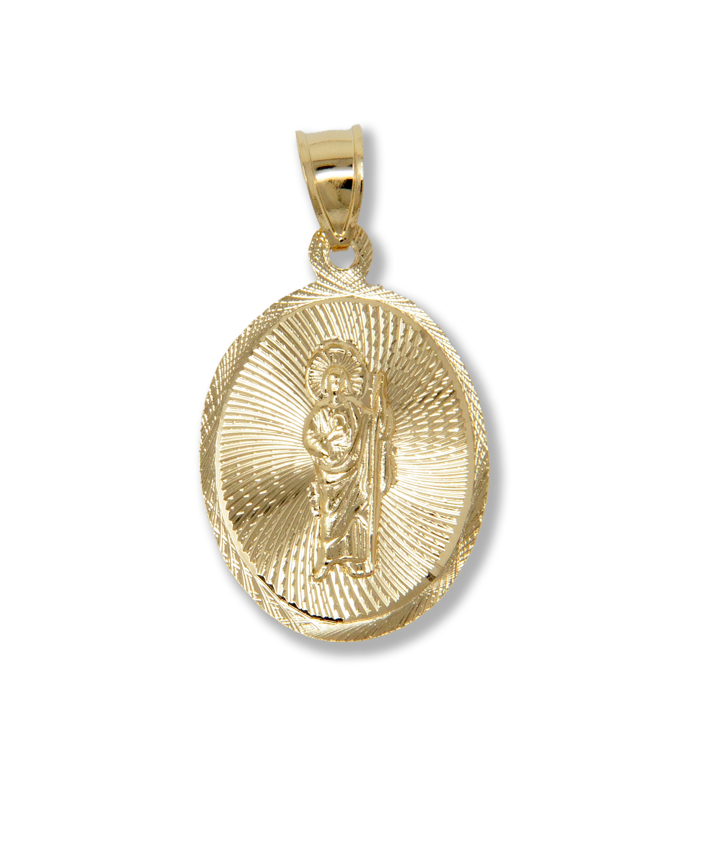 Oval shape Saint Jude charm, diamond cut, 14kt gold filled