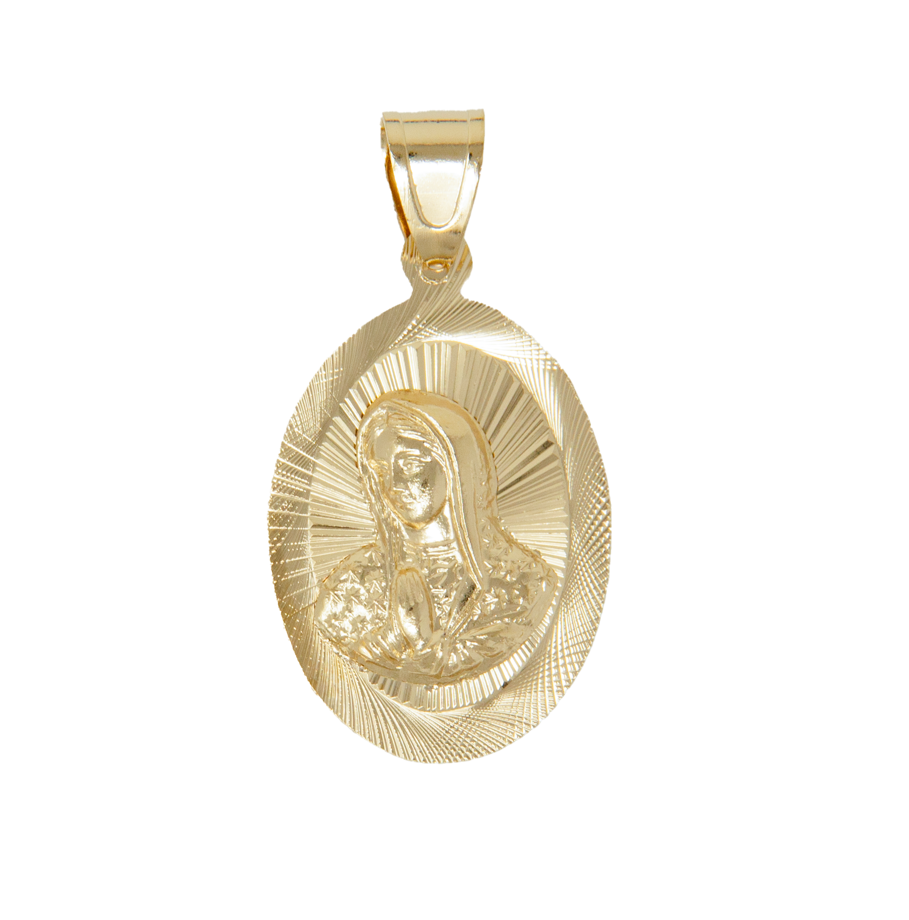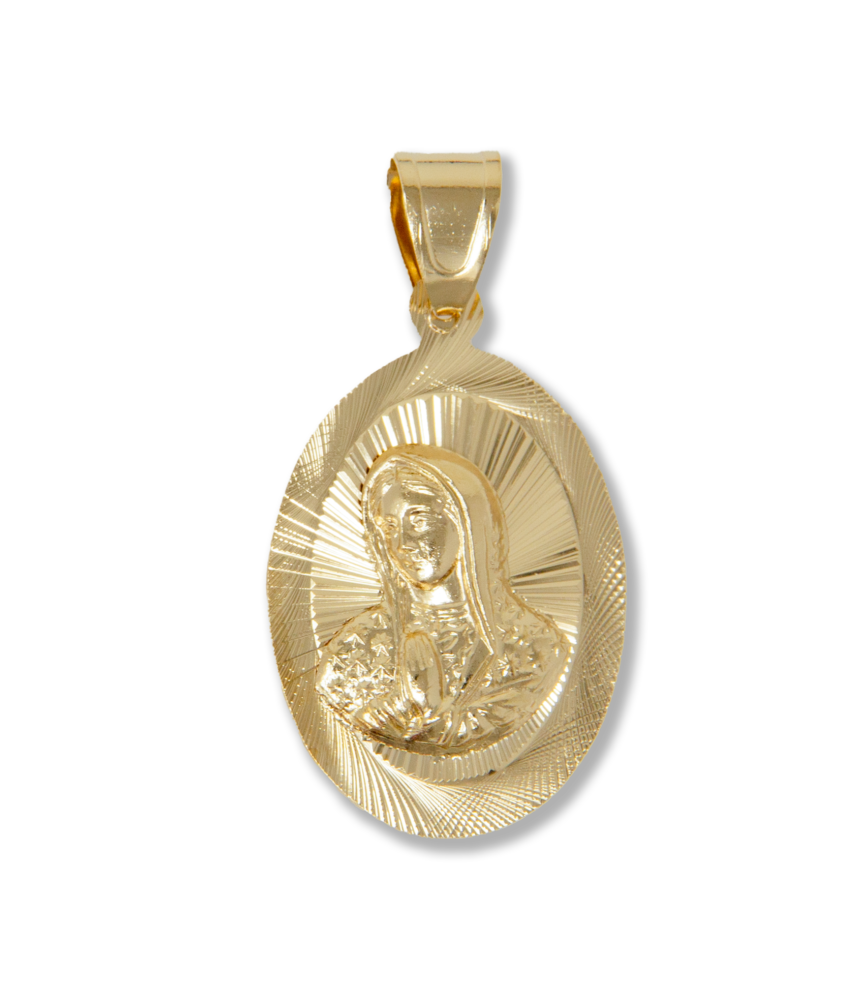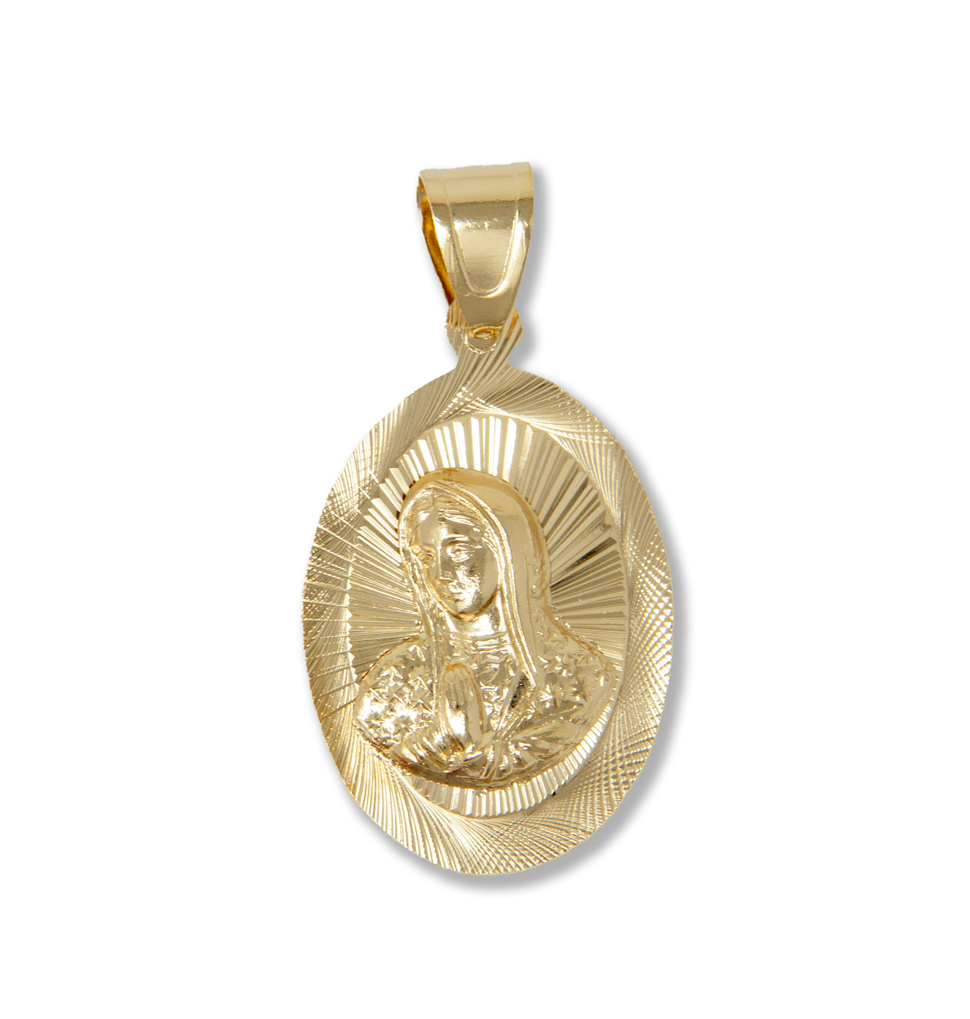 Oval Shape virgin of Guadalupe diamond cut charm, 14kt gold filled