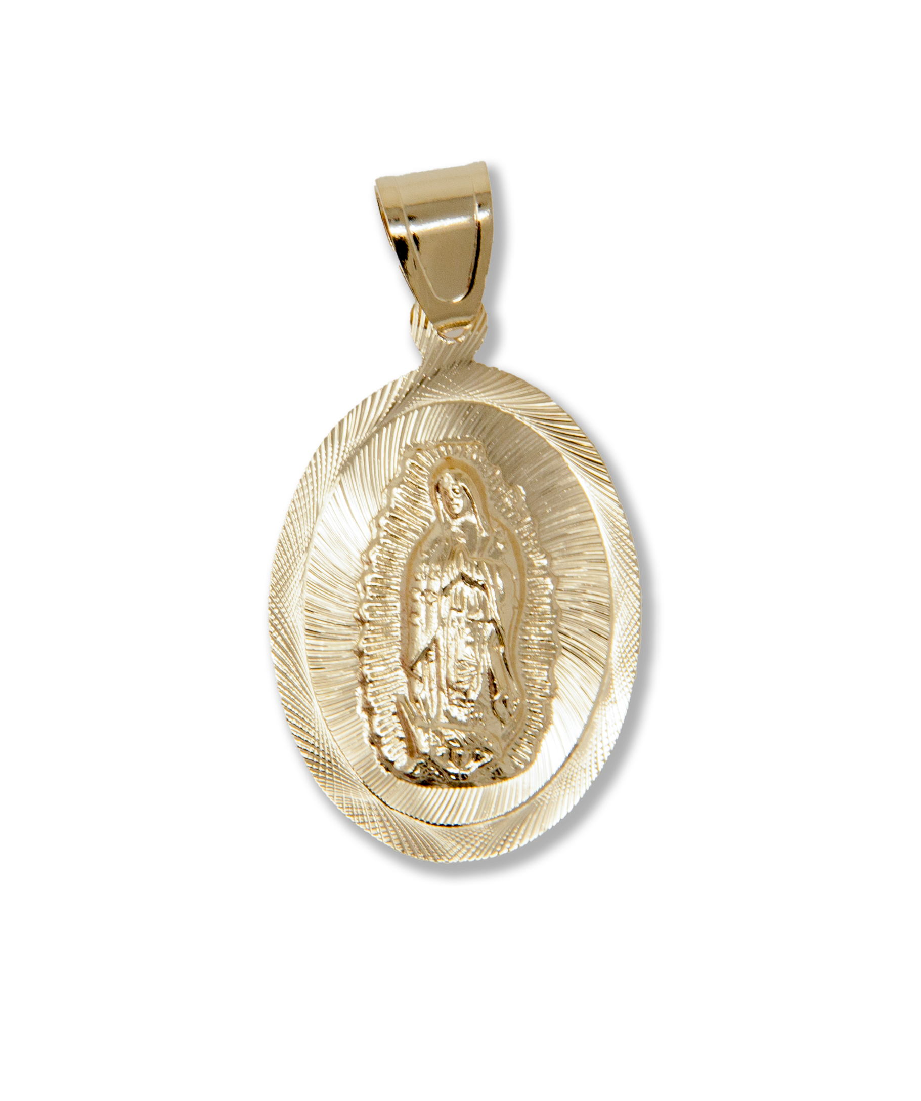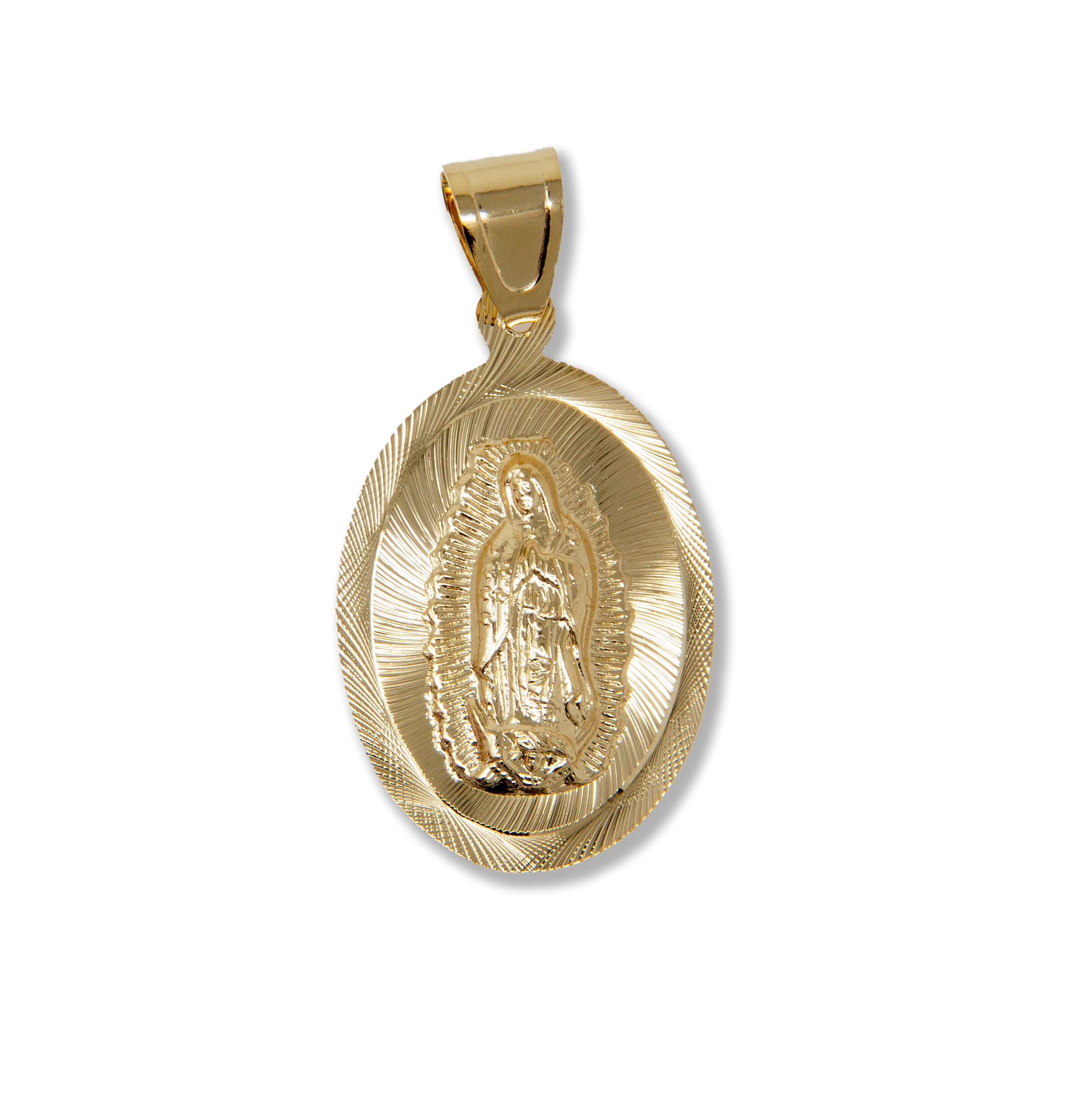 oval shape virgin of Guadalupe diamond cut charm, 14kt golf filled,